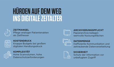 Die Verantwortlichen im Gesundheitswesen stehen vor vielfältigen Herausforderungen. Dazu zählen der Trend zu einer alternden Gesellschaft, der Fachkräftemangel oder die explodierenden Kosten. Die Digitalisierung hilft, diese Hürden zu überwinden. Sie verbessert die Verfügbarkeit von Informationen und ermöglicht es damit, Behandlungsabläufe und Verwaltungsprozesse effizienter und kostengünstiger zu gestalten.