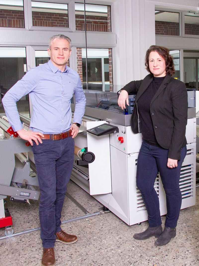 Styleways setzt gleich auf zwei Canon Colorado M, eine mit Jumborollen Vor- und Nachbearbeitung von Fotoba. In Kombination mit Fotoba entsteht die Canon Print Factory, zum Beispiel für das Bedrucken von Tapetenbahnen. Die Canon Systeme drucken von Rolle zu Rolle und bieten eine modulare Konfiguration in Bezug auf Geschwindigkeit, Oberflächen-Finishing und den Einsatz von weißer Tinte. Diese Modularität passt perfekt zu den Anforderungen von Styleways. Vor allem stark nachgefragte, anspruchsvolle Multi-Layerdrucke und kleine Auflagen lassen sich durch die Colorado in äußerst kurzen Rüstzeiten realisieren.