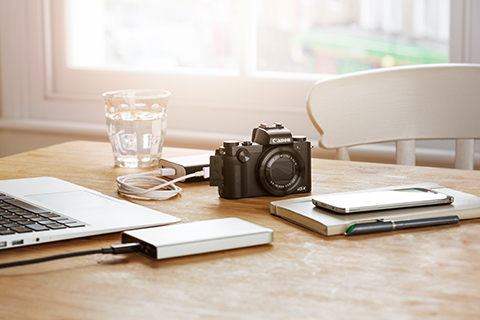 Image Sync ermöglicht das automatische Backup der Aufnahmen auf Cloud-Diensten wie Flickr, Google Drive und irista; die sofortige Übertragung auf ein Smartphone erfolgt über das integrierte WLAN mit Dynamic NFC. Machen Sie großartige Gruppenbilder mit der drahtlosen Fernbedienung Ihrer Kamera vom Smartphone oder Tablet. Ganz einfach Ihre Kamera über USB laden.