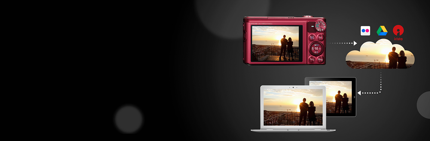 Dank WLAN* mit Dynamic NFC erfolgt die Verbindung zur Datenübertragung mit einem kompatiblem Smartphone durch eine einfache Berührung beider Geräte. Die Option zur kabellosen fernbedienten Aufnahme ermöglicht großartige Landschaftsaufnahmen oder Selfies. Mit GPS über das Mobilgerät lassen sich die Aufnahmen mit Standortdaten versehen, so dass Sie immer wissen, wo das Bild aufgenommen wurde – und mit Image Sync können Sie automatisch neue Aufnahmen auf einem Cloud-Speicher wie z. B. irista von Canon sichern.