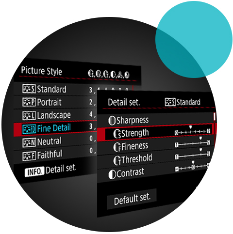 High Dynamic Range (HDR) Aufnahmen Einen hohen Detailreichtum auch in besonders dunklen oder hellen Bereichen bietet die HDR-Funktion. Ideal für Landschaftsaufnahmen und Stillleben kombiniert dieser Modus drei Aufnahmen mit unterschiedlicher Belichtung (Standard, unterbelichtet, überbelichtet) zu einem Bild.Mehrfach-BelichtungDer Modus Mehrfachbelichtung ermöglicht bereits in der Kamera beeindruckende Bildkompositionen. Hierbei können mehrere Aufnahmen mit verschiedener Belichtung gemacht und anschließend automatisch überlagert werden. Full-HD-EOS-MoviesFull-HD EOS Movies ermöglicht bei Videoaufnahmen die volle kreative Steuerung von Bild und Ton.Der Bildstil „Details“ Setzt man den Bildstil „Details“ ein, so priorisiert der hochauflösende Sensor bei der Aufnahme Farbabstufungen und Details. Zudem bietet dieser Bildstil bei JPEG-Aufnahmen die Einstellung kamerainterner Nachschärfung wie Schwellenwert oder Feinheit – für hochwertige Aufnahmen direkt aus der Kamera. Aufnahmen per Timer-FunktionEin integrierter Intervall-Timer ermöglicht Zeitrafferaufnahmen mit voreinstellbaren Zeitintervallen. Für Aufnahmen mit extrem langen Belichtungszeiten kann der Verschluss im Modus Langzeitbelichtung (B) auf eine definierte Zeit eingestellt werden.