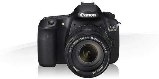 Die EOS 60Da, die auf Grundlage der beliebten EOS 60D konstruiert wurde, nimmt auch das langwellige Hα-Licht auf und eignet sich somit ideal für alle Anwendungen in der Astronomie. Im Vergleich zur EOS 60D verbessert der modifizierte optische Tiefpassfilter die Aufnahme von Infrarotlicht ungefähr um den Faktor Drei und ermöglicht so das Fotografieren von Infrarotphänomenen wie beispielsweise diffusem Nebel.