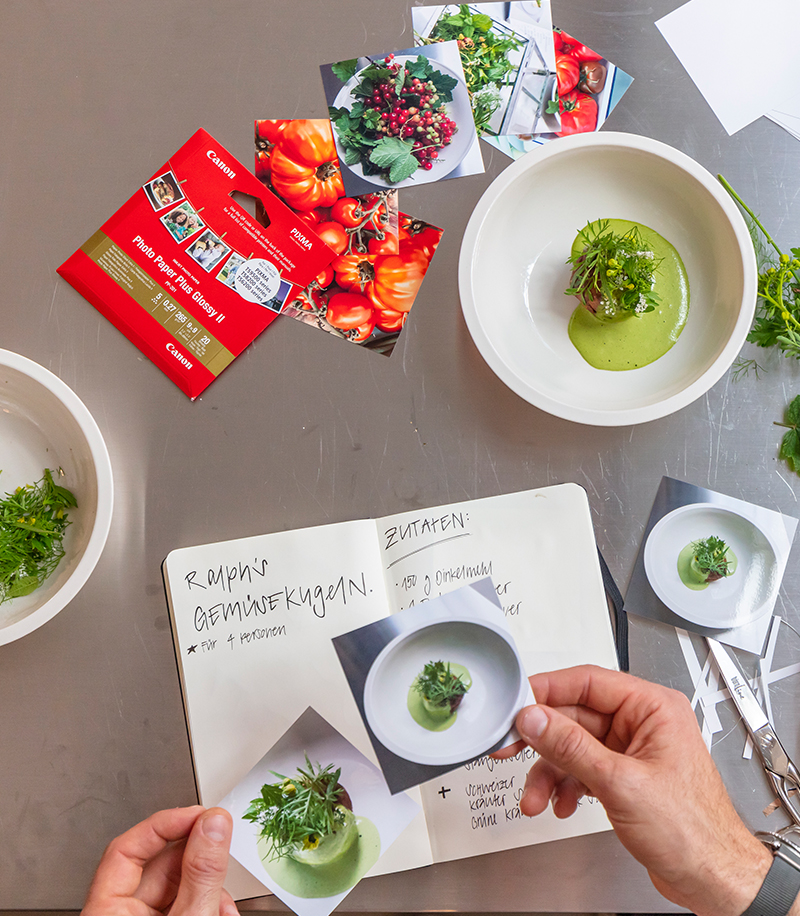 Als Koch ist Ralph stets bemüht, Rezepten eine persönliche Note und den entscheidenden Twist zu verleihen. Ideen aus der Versuchsküche und kulinarische Inspirationen, die er auf seinen Reisen sammelt, dokumentiert er in einem Rezept-Tagebuch. Seine Notizen und Anmerkungen ergänzt er am liebsten mit quadratischen Fotos im Insta-Look, die er noch beim Kochen direkt vom Smartphone aus druckt.