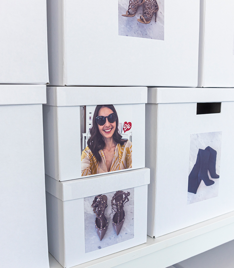 Als Fashionista und Ordnungsliebhaberin wünscht sich Simone schon lange mehr Übersicht über ihre Schuh- und Accessoires-Sammlung. Inspiriert vom aktuellen Aufräum-Trend hat sie die Sitzbank in ihrem Eingangsbereich mit Hilfe simpler weißer Boxen zu einem stylishen Schuh- und Accessoires-System umfunktioniert. Dank des neuen umklebbaren Fotopapiers lässt sich alles im Nu finden und – falls nötig – ganz einfach neu positionieren.