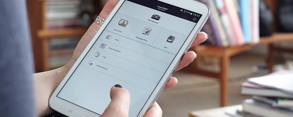 Wenn Sie die Canon PRINT App herunter laden, können Sie mit Ihrem Smartphone oder Tablet drucken und scannen oder einen direkten Zugang zur Cloud herstellen. Dank integriertem NFC ist die Verbindung schnell und einfach aufgebaut. Dank Wi-Fi Direct® Modus, der ein Ad-hoc-Netzwerk aufbaut, ist weder ein WLAN-Router, noch eine Internet-Verbindung oder ein Passwort nötig