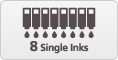 8 separate Tinten (fabrstoffbasiert) für Drucke in professioneller Qualität