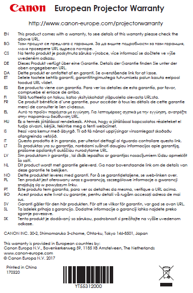 Europäische Projektorgarantie von Canon