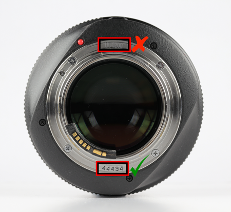Bitte beachten Sie, dass an manchen Objektiven möglicherweise auch nur ein Unternehmenscode eingeprägt ist, der nicht mit der Seriennummer zu verwechseln ist.