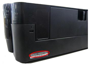 Beachten Sie, dass im Laufe der Zeit Tinte auf den weißen Aufkleber im Inneren des Geräts austreten kann, wodurch die Seriennummer ggf. schlecht erkennbar ist. Sie können die Tinte mit einem trockenen Tuch abwischen.