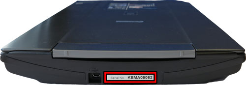Die Seriennummer Ihres CanoScan oder CanoScan LiDE Scanners ist 9 Zeichen lang und besteht aus 4 Buchstaben, gefolgt von 5 Zahlen, z. B. XXXX00000. Bei manchen Modellen ist die Bezeichnung „Seriennummer“ angegeben, bei anderen stehen nur die Buchstaben „S/N“ (Serial Number). Die Bezeichnung ist auf einen Aufkleber gedruckt, der sich entweder auf der Rück- oder der Unterseite des Scanners befindet.