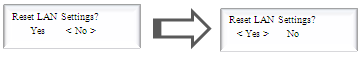 1. Verwenden Sie die Pfeiltasten, um [Reset LAN settings] (LAN-Einst. zurückset.) auszuwählen, und drücken Sie die Taste [OK].