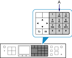 Sie können Zeichen auf diesem Drucker eingeben, wenn die alphanumerischen Tasten (A) auf dem Bedienfeld leuchten. Befolgen Sie die unten beschriebenen Anweisungen.