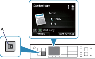 1. Drücken Sie die Taste [Menu] (Menü) (A) des Druckers.