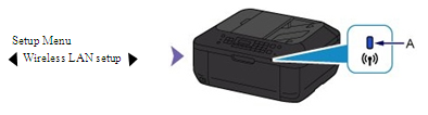 Drücken Sie die Taste [Setup] (Einrichtung) (A) des Druckers.