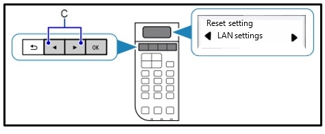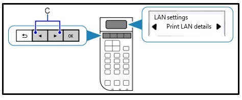 - Verwenden Sie die Pfeiltaste (C), um [Print LAN details] (LAN-Details drucken) auszuwählen, und drücken Sie die Taste [OK].
