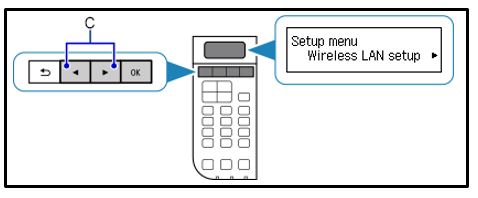 - Verwenden Sie die Pfeiltasten (C), um [Wireless LAN setup] (Wireless LAN-Einrichtung) auszuwählen, und drücken Sie die Taste [OK].